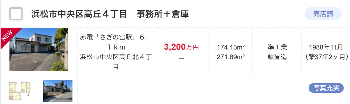 【中央区高丘】事務所付き売倉庫 3,200万円!浜松西IC車6分・資産価値ある好立地の売物件です