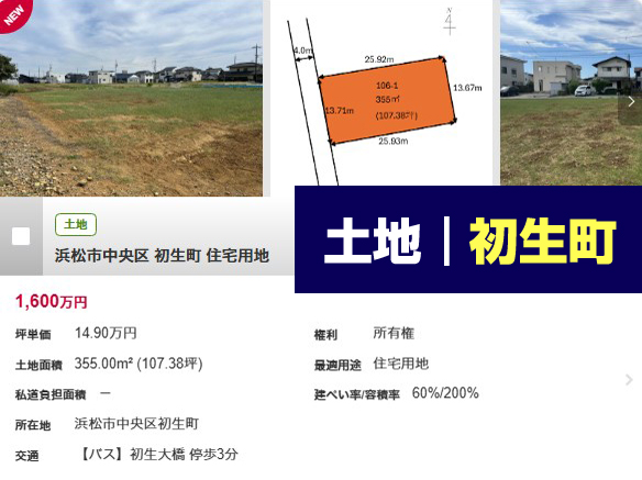 浜松市中央区初生町に、圧倒的な開放感を誇る107.38坪の住宅用地が登場しました。 高台に位置するため日当たりと風通しは抜群。プライバシーを守りながら光と風をたっぷりと取り込める、希少な「角地」です。